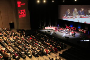 Être militant du spécifique c’est souvent très ingrat, c’est encore trop souvent obligé de s’excuser d’être cadre, être celui ou celle qui pose toujours les questions désagréables, celles qui sont posées par les ICTAM dont une majorité n’est pas dans l’organisation. Merci pour tout le travail que vous faites au quotidien : c’est grâce à vous que la CGT a été précurseuse sur de nombreux sujets : le management, l’égalité professionnelle, le droit à la déconnexion, le télétravail, les lanceurs d’alerte, l’intelligence artificielle, le radar travail environnement… toutes ces questions ont été travaillées par l’Ugict avant d’être reprises au plan confédéral. C’est grâce à vous et notamment à Agathe que nous avons réussi à lancer un collectif jeunes diplômés dynamique. Avec l’Ugict, ses productions, ses militants et militantes, nous avons un trésor entre les mains. Combien de cadres et de techniciens nous ont dit en découvrant vos productions, votre site internet « c’est génial, pourquoi ne m’a-t-on pas parlé cela plus tôt ? ». Voilà ce qu’il nous reste à faire, déployer partout l’Ugict pour organiser en grand les ingénieurs, cadres et techniciens et la présence à votre congrès de nombreux secrétaires généraux de FD et d’UD et de dirigeants confédéraux est un signal très important sur ce redimensionnement de l’Ugict !
